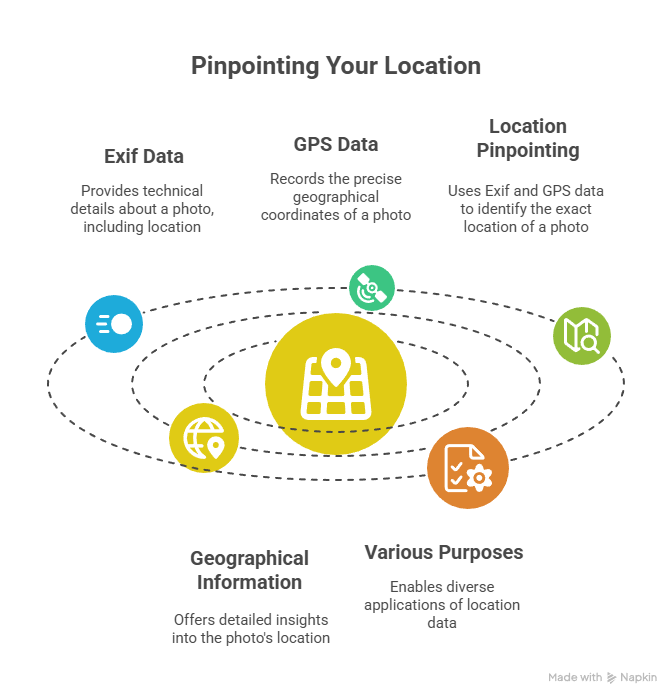 You will immediately see a map if it contains GPS info. The photo can be stripped of data if you want to share it.